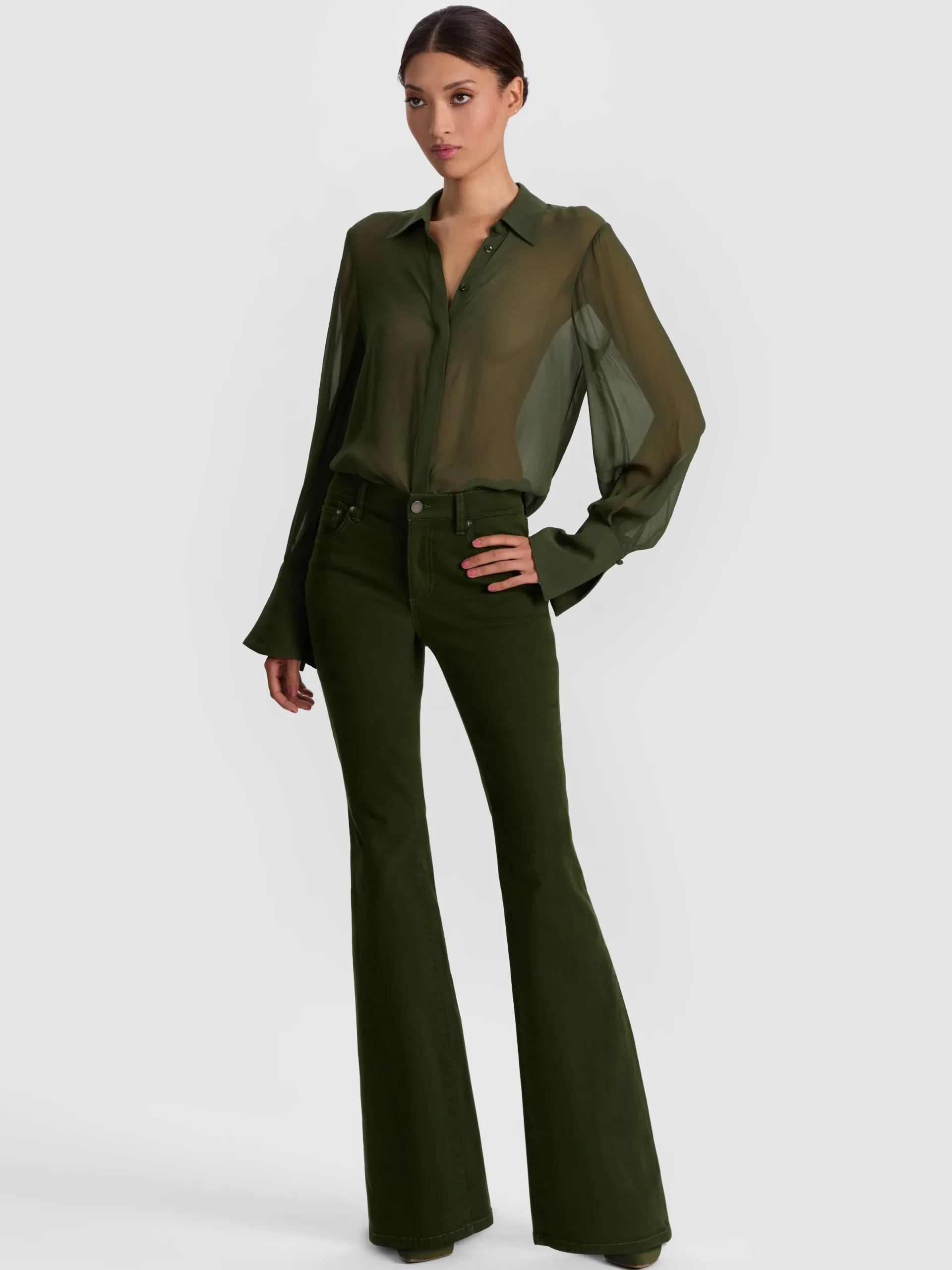 Alice and Olivia ANDREW PANT|JADE MESH BUTTON DOWN*ANDREW PANT