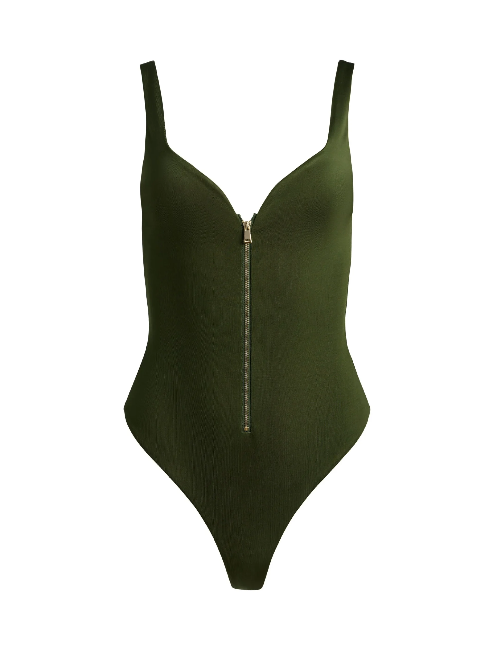 - Green front zip bodysuit