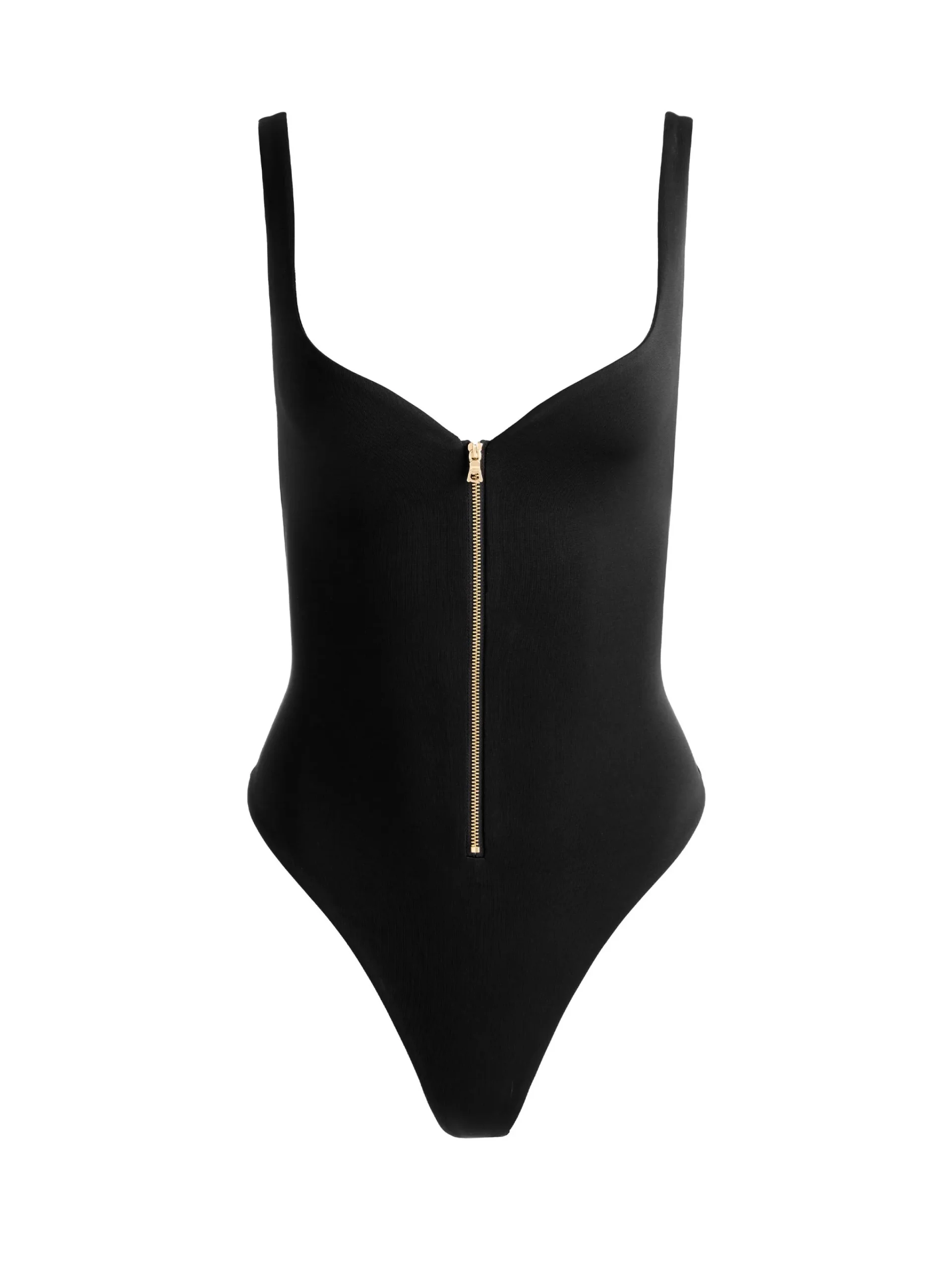 - Black front zip bodysuit