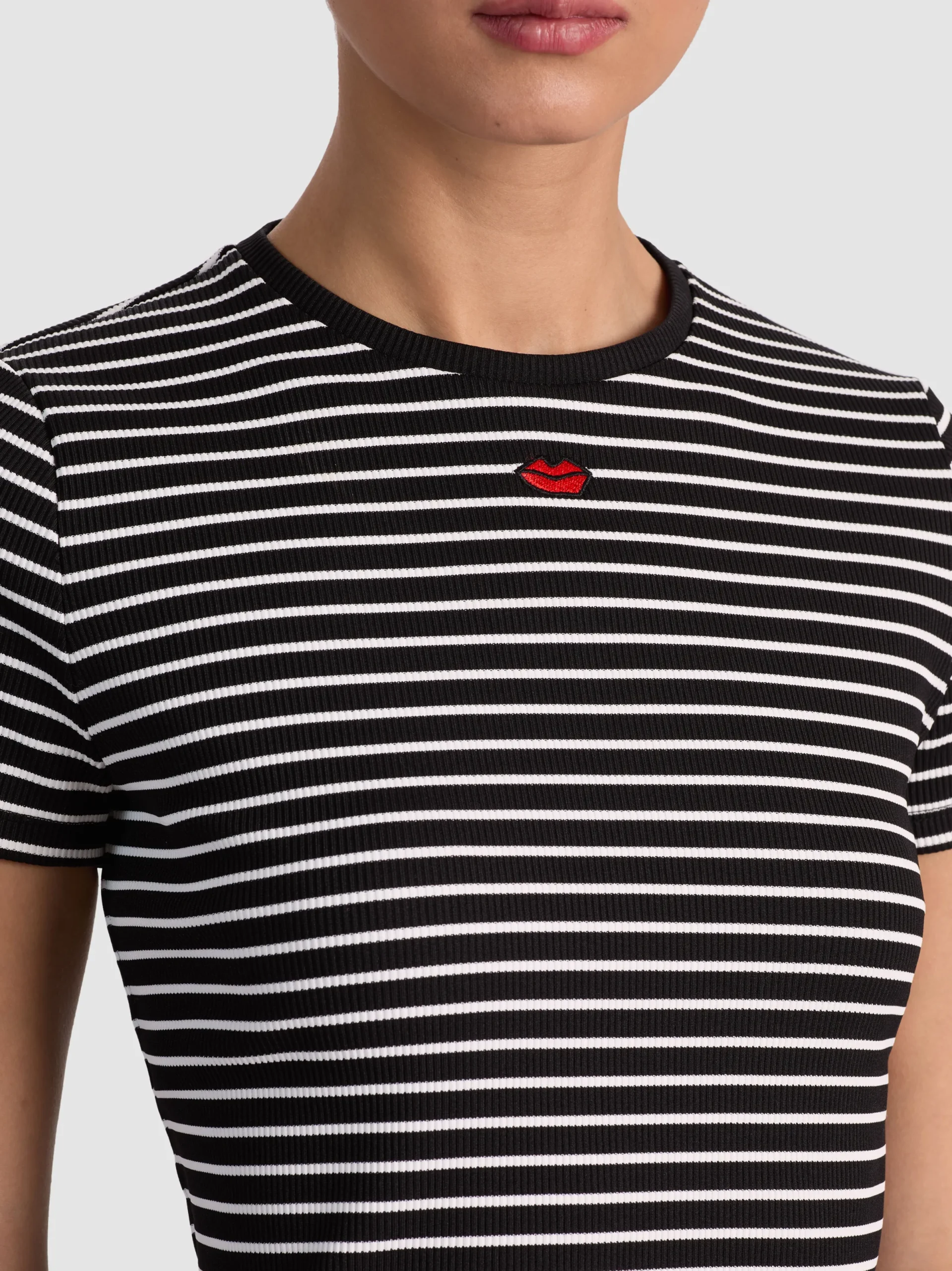 - Embroidered lip motif