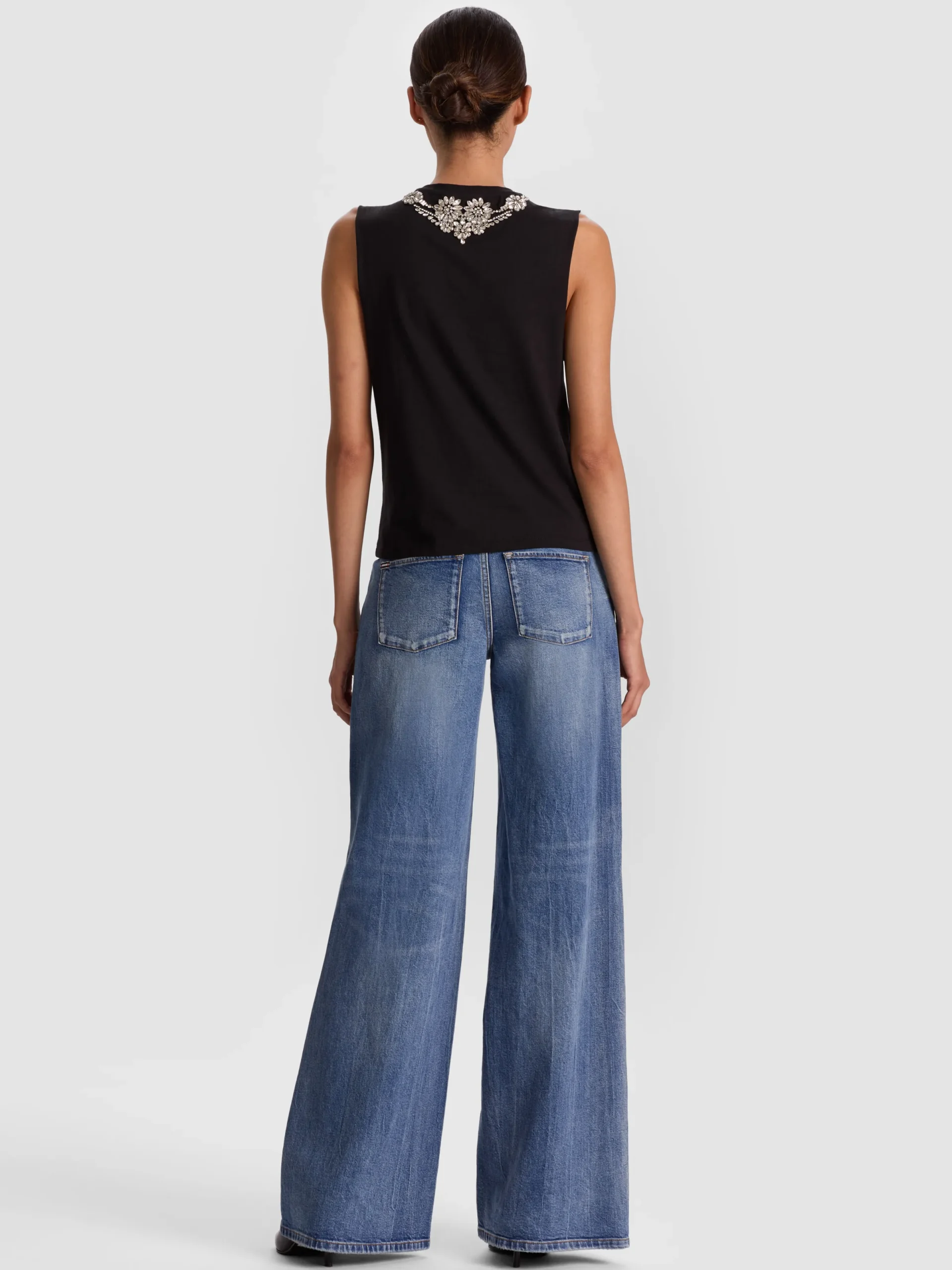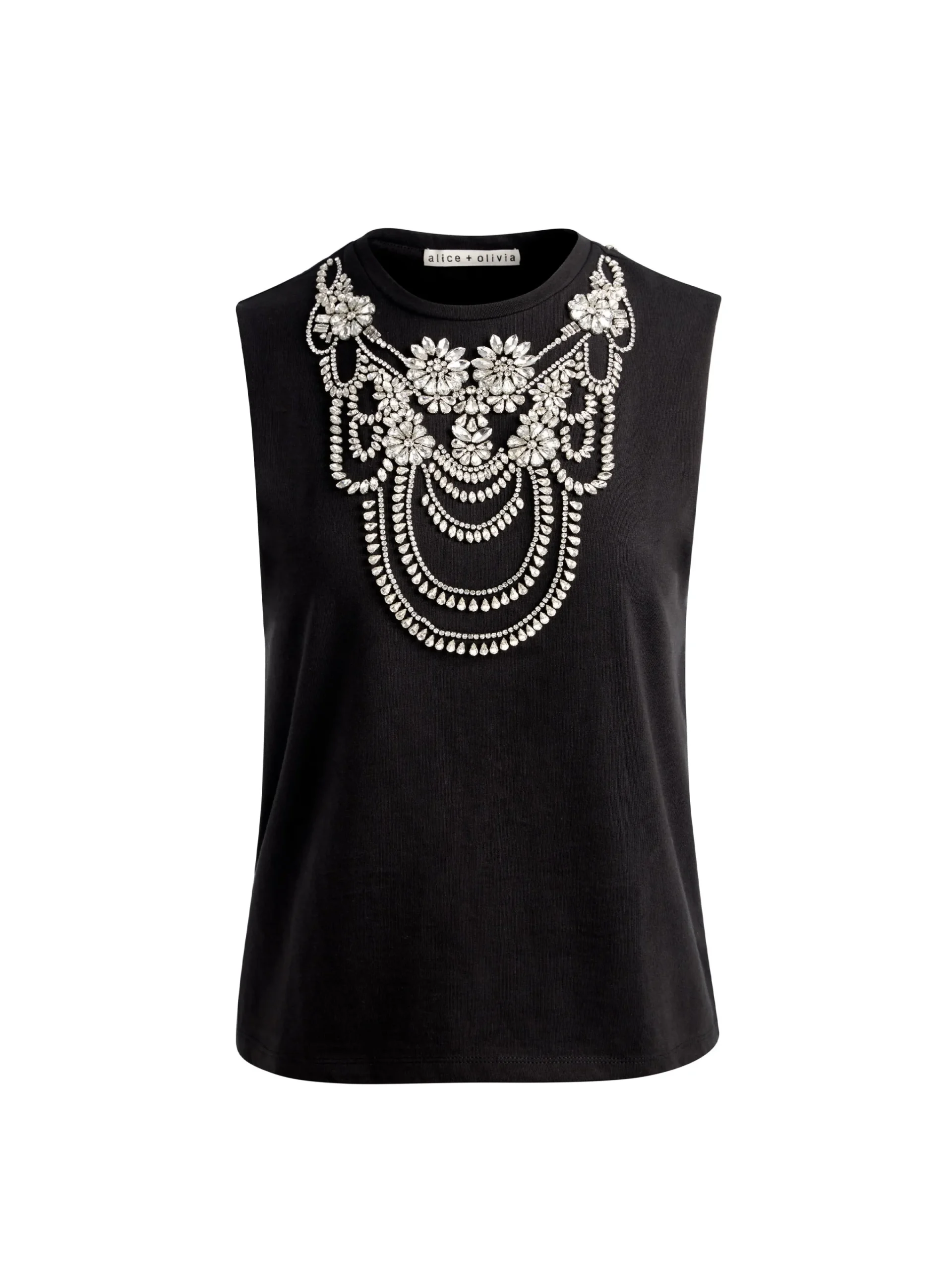 - Hand-embellished crystal neckline