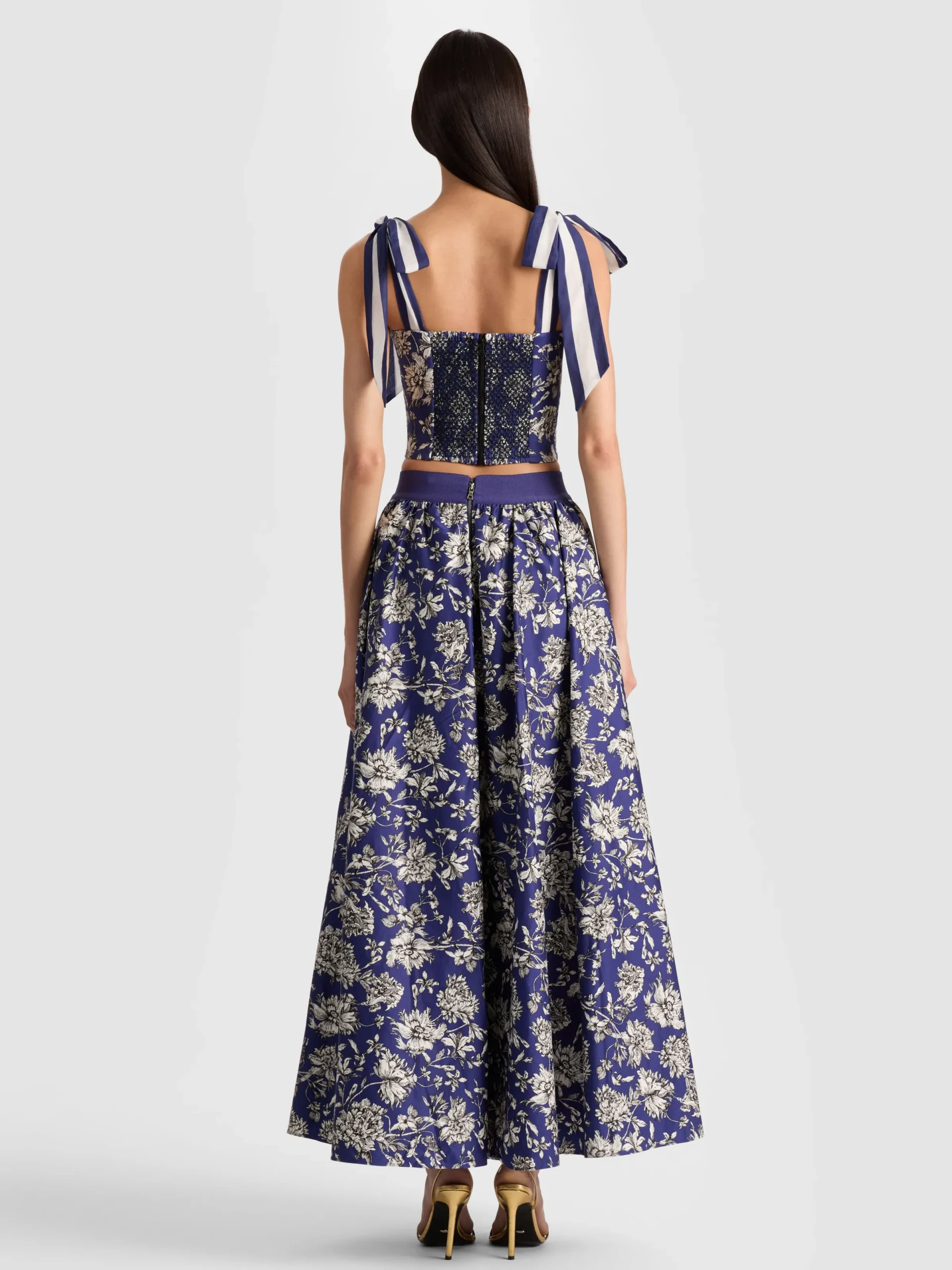 - Smocked back with zipper closure