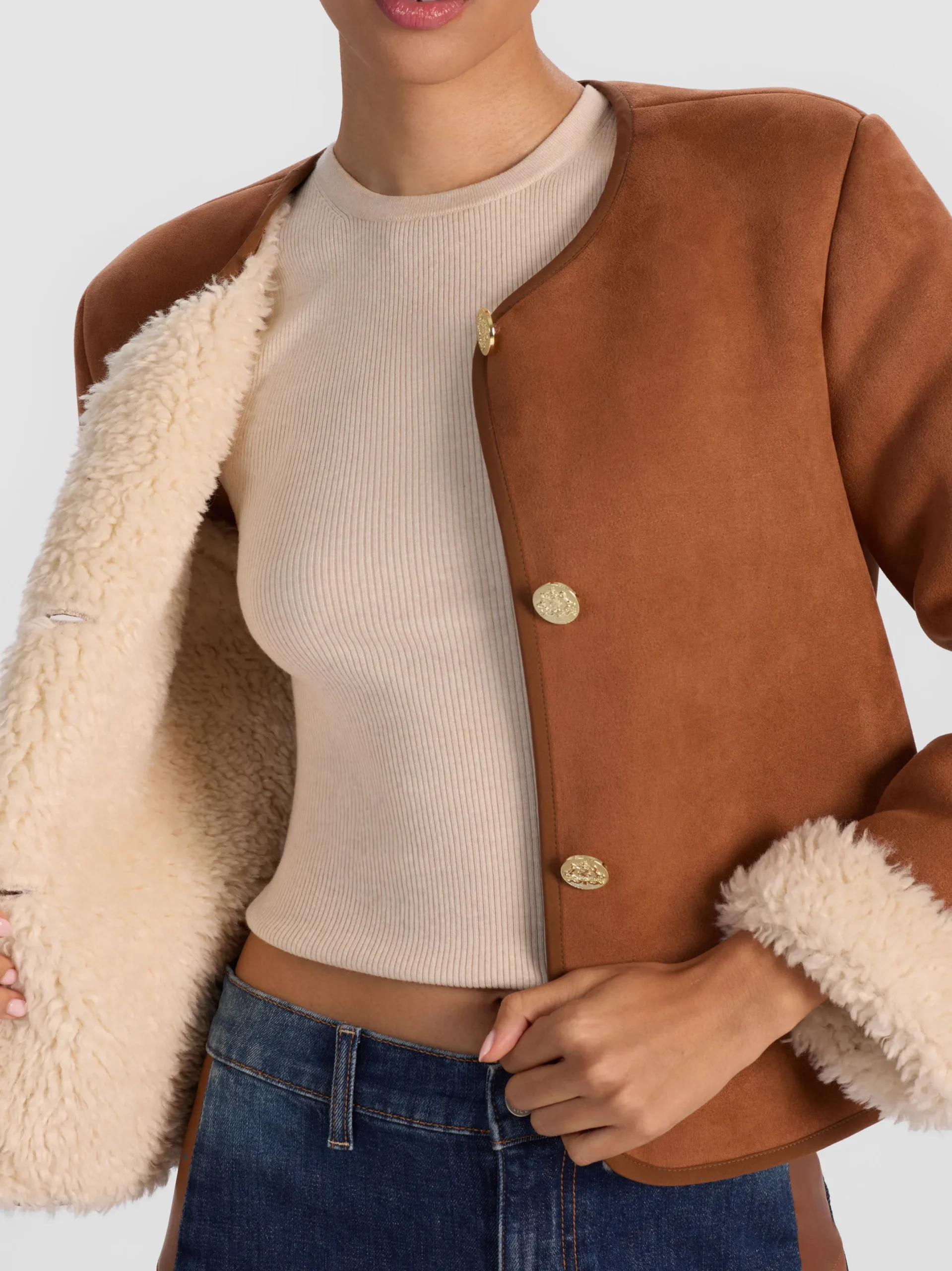 - Faux shearling interior