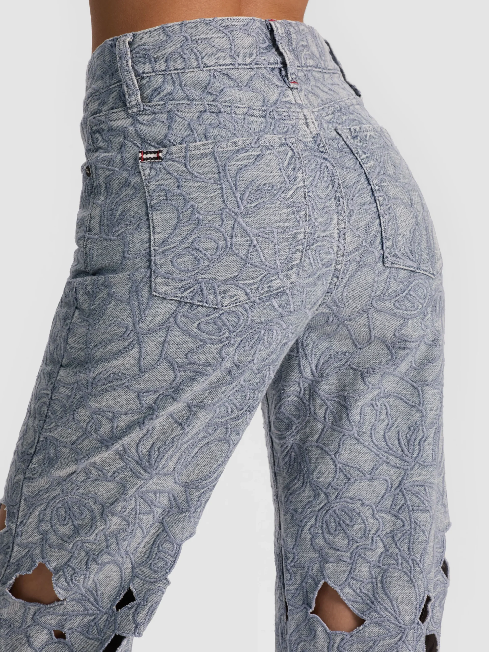 - Laser-cut denim