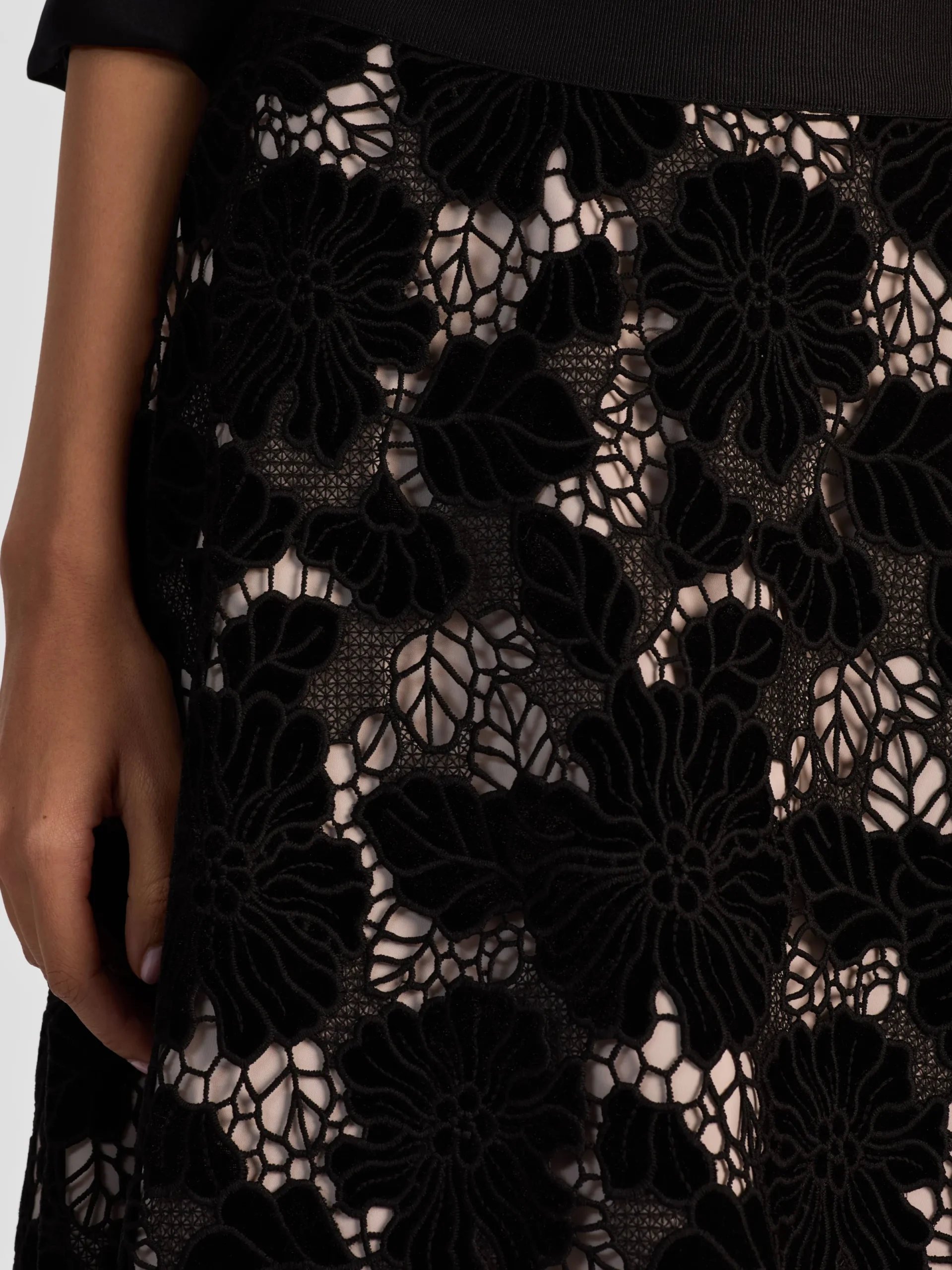 - Floral velvet cutwork on almond tulle